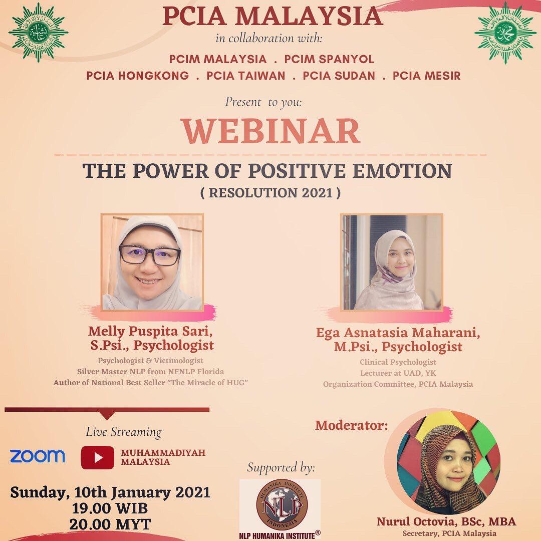 demikian pertanyaan pembuka Melly Puspitasari, narasumber dalam webinar The Power of Positive Emotion yang diadakan PCIA Malaysia semalam.